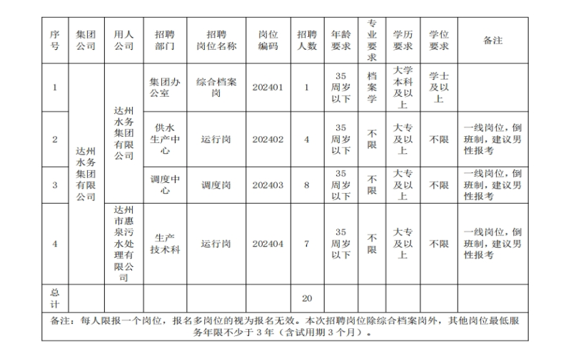 達(dá)州水務(wù)集團(tuán)有限公司2024年公開招用人員公告