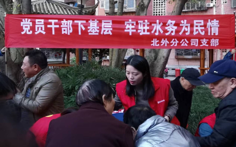 為深入貫徹落實(shí)“四下基層”安排部署,踐行為民服務(wù)宗旨,加強(qiáng)與用戶之間的溝通,提升供水服務(wù)質(zhì)量,11月17日,集團(tuán)總工程師李莉君帶領(lǐng)北外分公司黨員干部前往高家壩社區(qū)開展“黨員干部下基層,牢駐水務(wù)為民情〞供水服務(wù)專題活動。