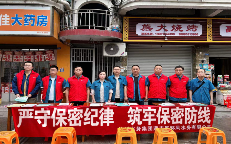 為貫徹總體國家安全觀,增強(qiáng)全民國家安全意識和素養(yǎng),筑牢干部職工群眾保密思想防線,匯聚起維護(hù)國家安全的強(qiáng)大合力。4月25日上午,環(huán)鳳水務(wù)公司結(jié)合“供水服務(wù)進(jìn)社區(qū)”活動載體,以“嚴(yán)守保密紀(jì)律 筑牢保密防線”為主題,組織公司干部職工走進(jìn)通川區(qū)羅江鎮(zhèn)開展了保密宣傳進(jìn)社區(qū)活動。
